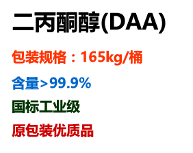 1.二丙酮醇是由丙酮制造亚异丙基丙酮、甲基异丁基酮、甲基异丁基甲醇及己二醇、佛尔酮、异佛尔酮过程中的中间体,二丙酮醇可用以制取金属清洁剂、木材防腐剂、照相软片和药物的防腐剂、抗冻剂、液压油溶剂,萃取剂和纤维整理剂等。二丙酮醇广泛用作静电喷漆、赛璐珞、硝化纤维、脂肪、油脂、蜡和树脂等的溶剂。双丙酮醇为高沸点有机溶剂。黏度低,温度对黏度的影响小。用作纤维素酯漆、印刷油墨、合成树脂涂料等的溶剂和脱漆剂。